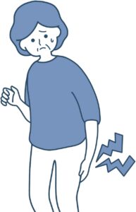 主な症状は、お尻から太ももの裏、ふくらはぎに痛みやしびれ、重さ、だるさなどです。