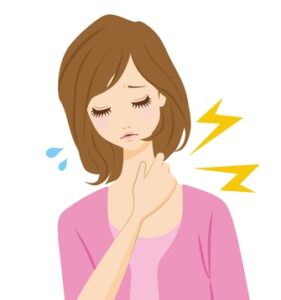 これにより、首の痛みや可動域の制限が生じ、日常生活に支障をきたすことがあります。筋肉痛や捻挫のような痛みがあるのが特徴です。